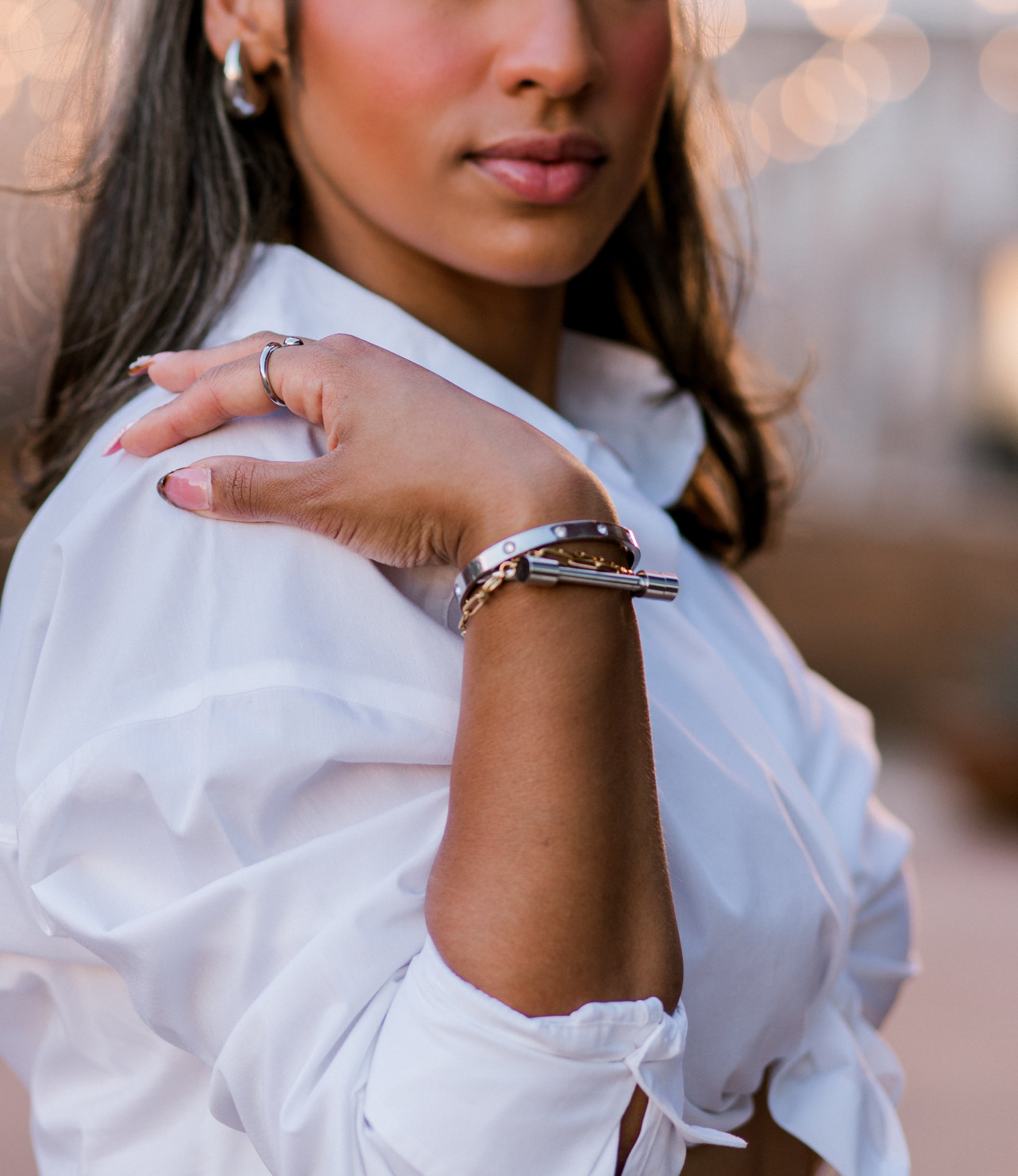 The Luxor Bracelet Cuff draws inspiration from the grandeur of ancient royalty, reimagined with a modern edge. Whether worn as a statement piece or layered for impact, Luxor is made to rule your collection.